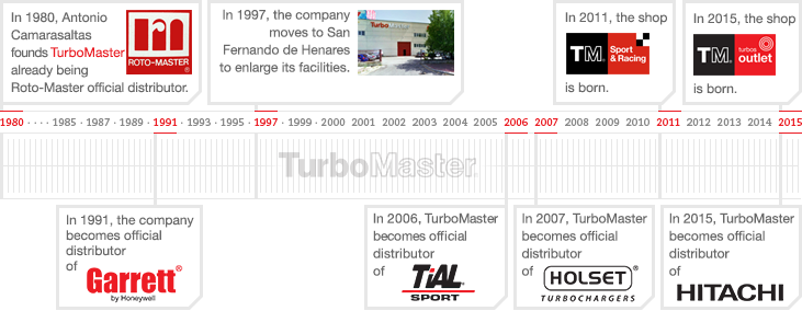 TurboMaster was born in 1980, therefore it is a young but fully established company in the market. Proof of this is that in 3 and a half decades we have emerged as a leading company that has earned the trust of prestigious brands such as Garrett, Holset, Hitachi, BorgWarner and Tial, all leading in their sector, and we have become their official distributor in Spain.